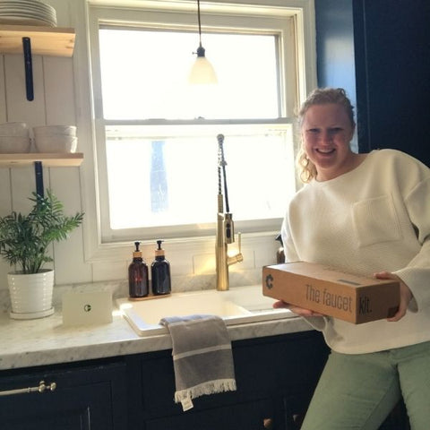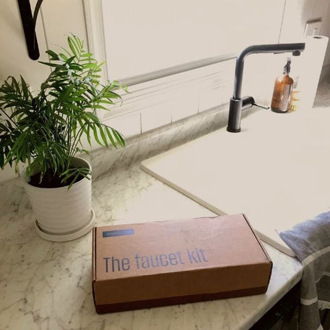 When Becky received The Faucet Kit, she was eager to get started on swapping out her single-handle kitchen faucet for a new one. Since her new faucet has the same number of mounting holes that exist in her sink, she was able to get started.