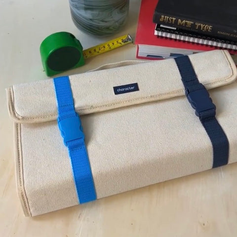 The Tool Tote, made of natural canvas, securely holds your go-to tools in its seven organized but flexible internal pockets and quickly clips to close so you can carry it wherever you go. It can hold up to eight tools and comes with a designated spot for your tape measure and hammer, both secured with a custom strap system. Build your own set and store whatever you please in this compact, durable carry-all.