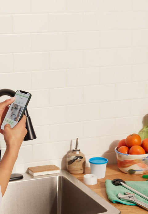 Your faucet has one handle with the hot and cold controls attached to it. It could have a plate or be standalone and may have a sprayer.