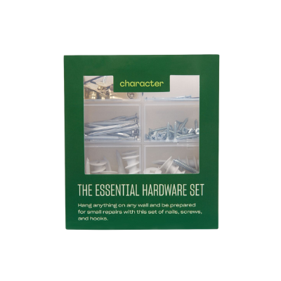 - The 13 essential hand tools in green with lifetime limited warranty (The Hammer, The Tape Measure, The Pliers Set, The Wrench Set, The Utility Knife, The Screwdriver, The Level, and The Hex Wrench Set)